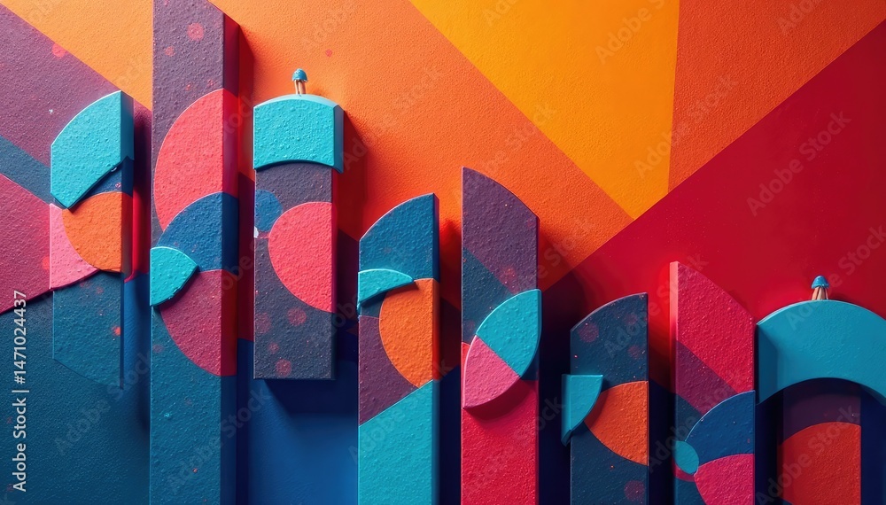 Abstract Cityscape with Vibrant Colors and Geometric Shapes