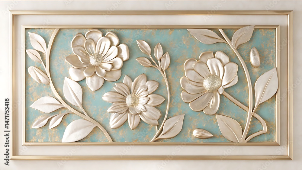 Golden Floral Art With Textured Petals Displayed In Wallpaper Mural - Decorly Solutions | Decorly Solutions