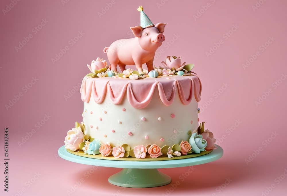 There's a cake with a pig on top Wallpaper
