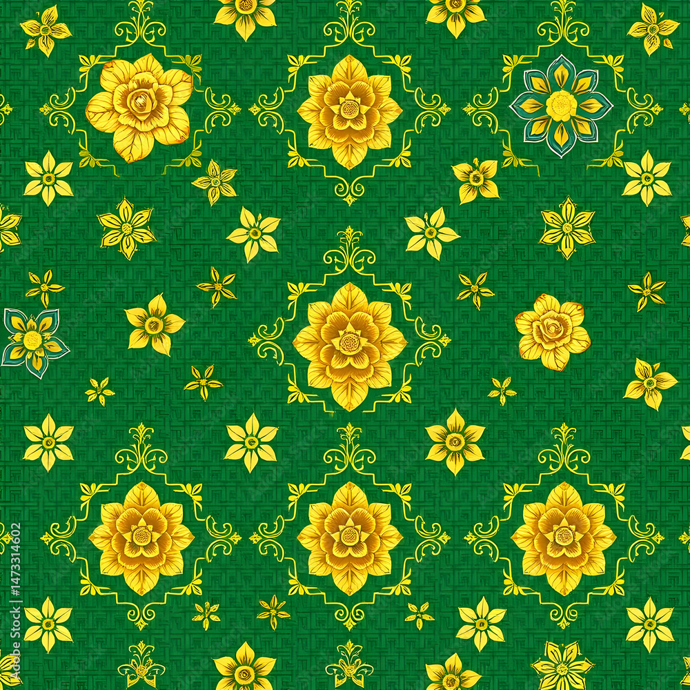 Chinese Gold Floral Pattern On Jade Green Seamless Wallpaper Mural - Decorly Solutions | Decorly Solutions