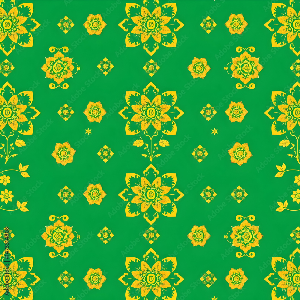 Chinese Gold Floral Pattern On Jade Green Seamless Wallpaper Mural - Decorly Solutions | Decorly Solutions