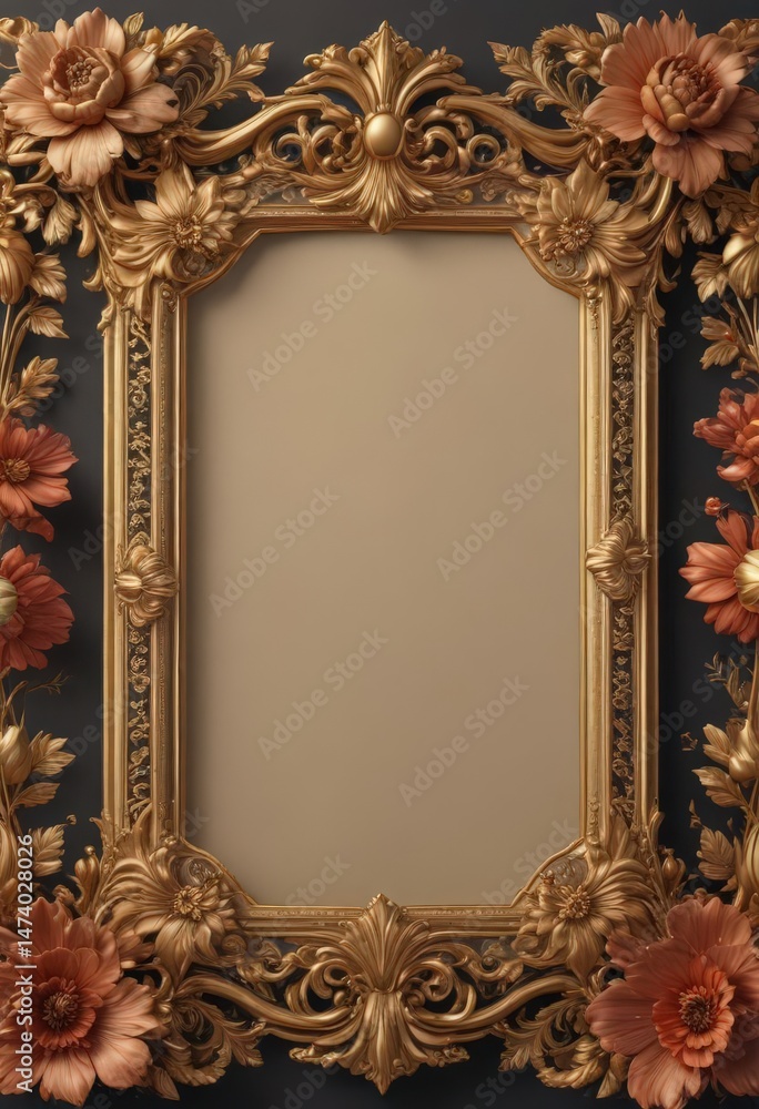 Exquisite Floral Frame Gilded Accents Retro Design Wallpaper Wallpaper Mural - Decorly Solutions | Decorly Solutions