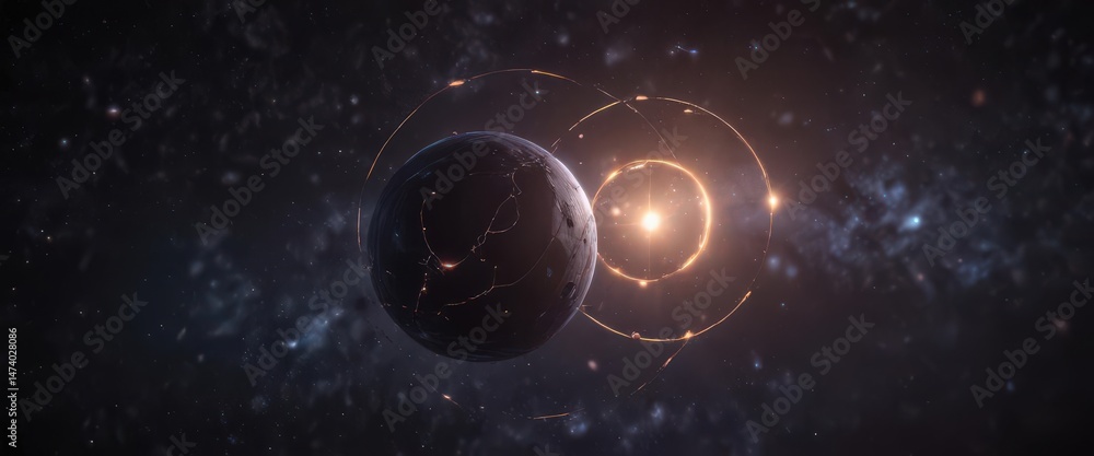 Geometric Planets Glowing Constellations Dark Void Abstract Background Wallpaper Mural - Decorly Solutions | Decorly Solutions