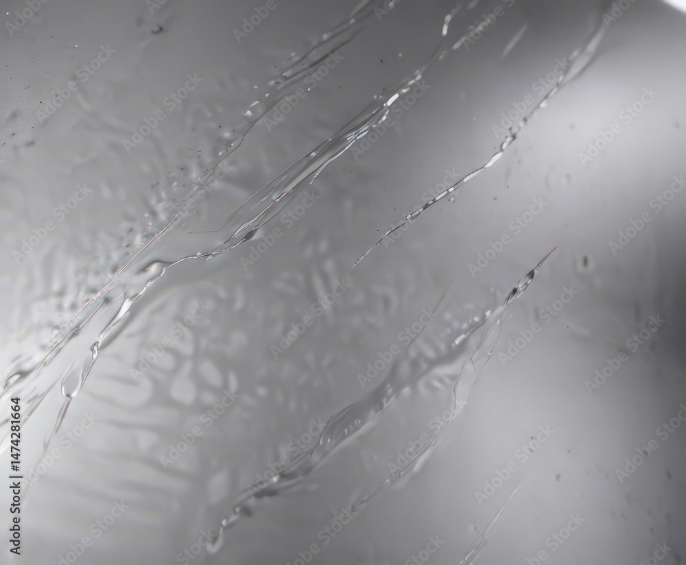 Surface with water drops, grey background.