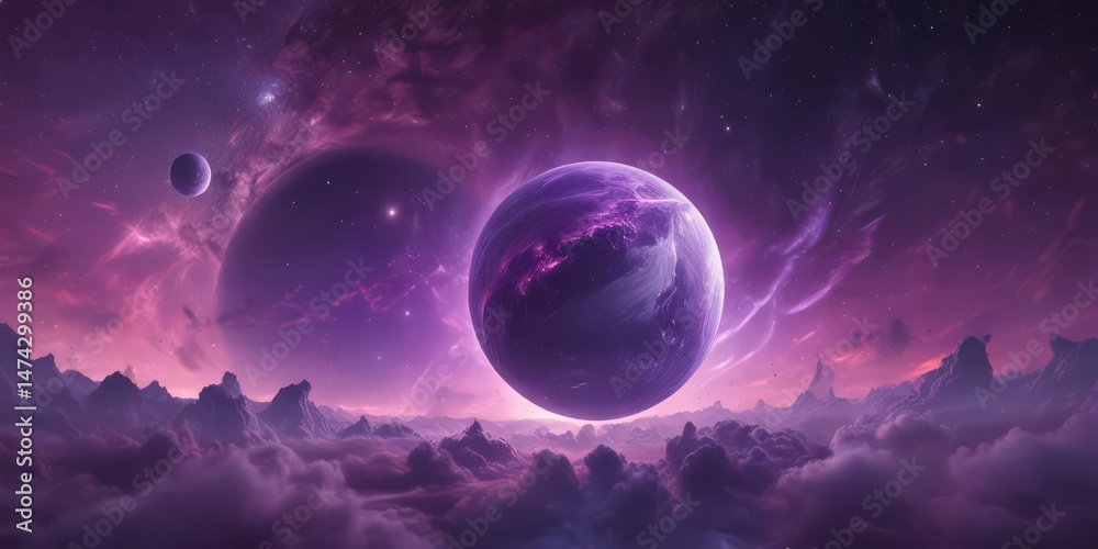 Ethereal Sphere Amidst Swirling Purple Nebula Clouds Cosmic Wallpaper Mural - Decorly Solutions | Decorly Solutions