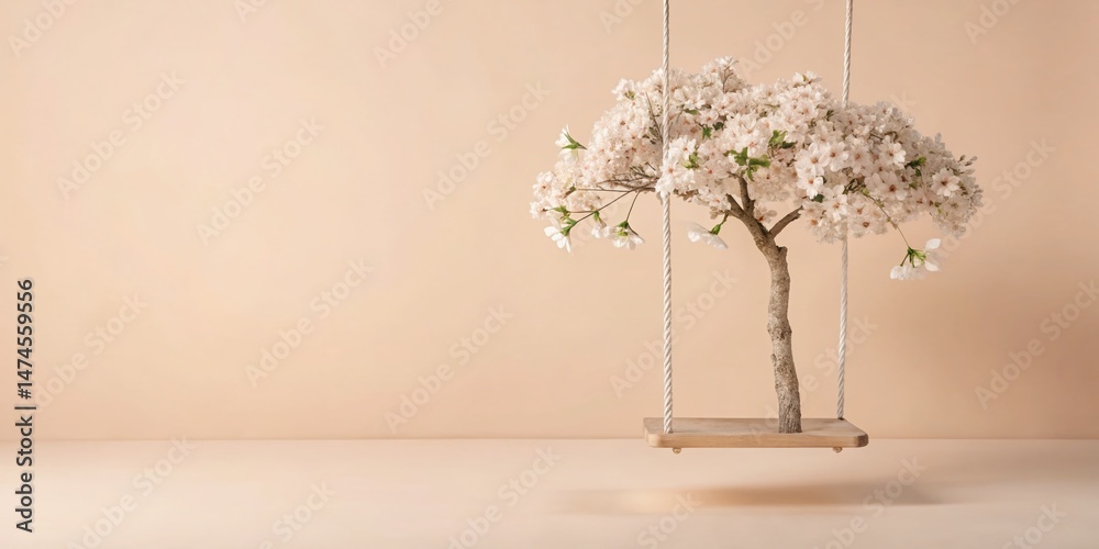 Minimalist Flowering Tree Swing - Serene Spring Scene Wallpaper