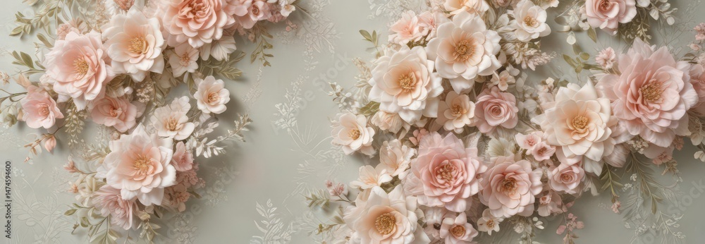 Cream Backdrop, Intricate Floral Motif, Elegant Design , Pastel, Luxury Design, Floral