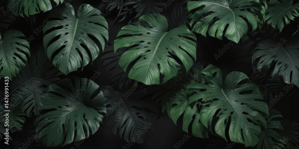 Intricate Black Background With Oversized Dark Green Tropical Wallpaper Mural - Decorly Solutions | Decorly Solutions