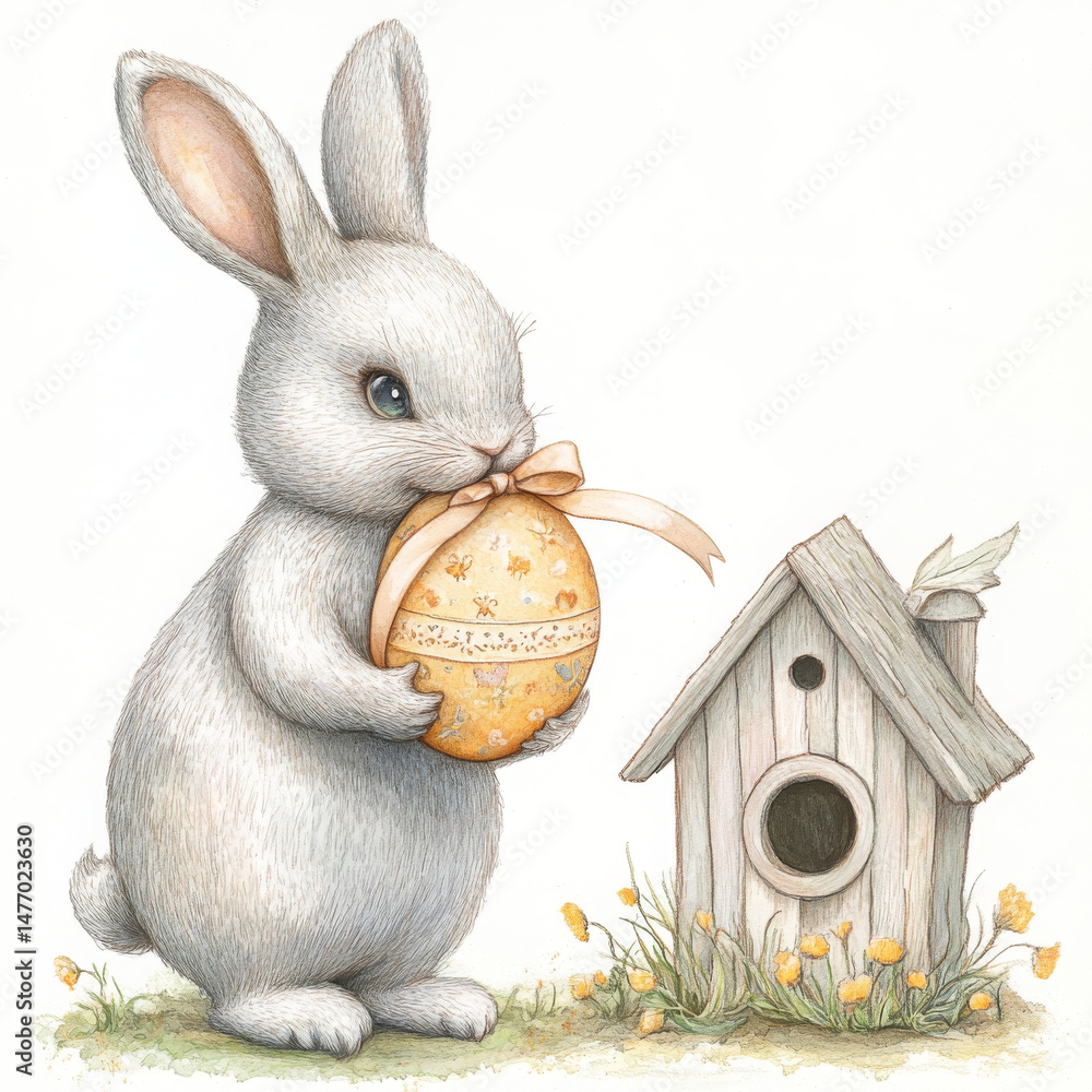 Charming Easter Bunny Holds Large Egg With Ribbon Wallpaper Mural - Decorly Solutions | Decorly Solutions