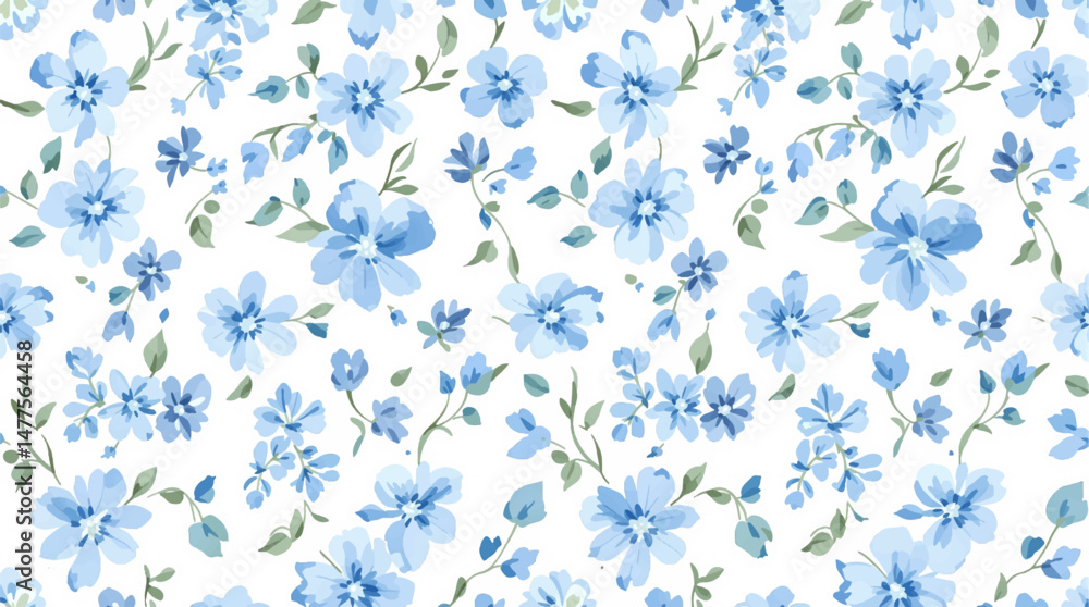 Watercolor background pattern Blue flowers on white background