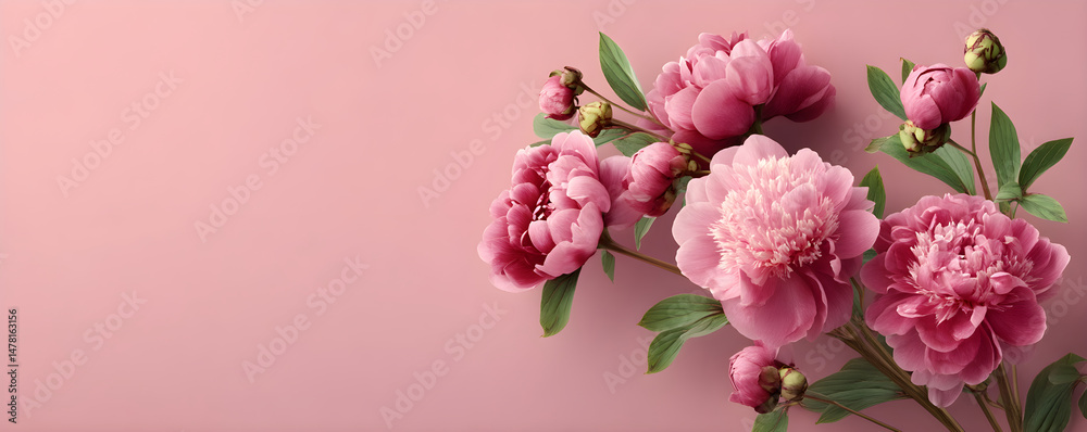 Pink Peonies Bouquet With Green Leaves On Pink Wallpaper Mural - Decorly Solutions | Decorly Solutions
