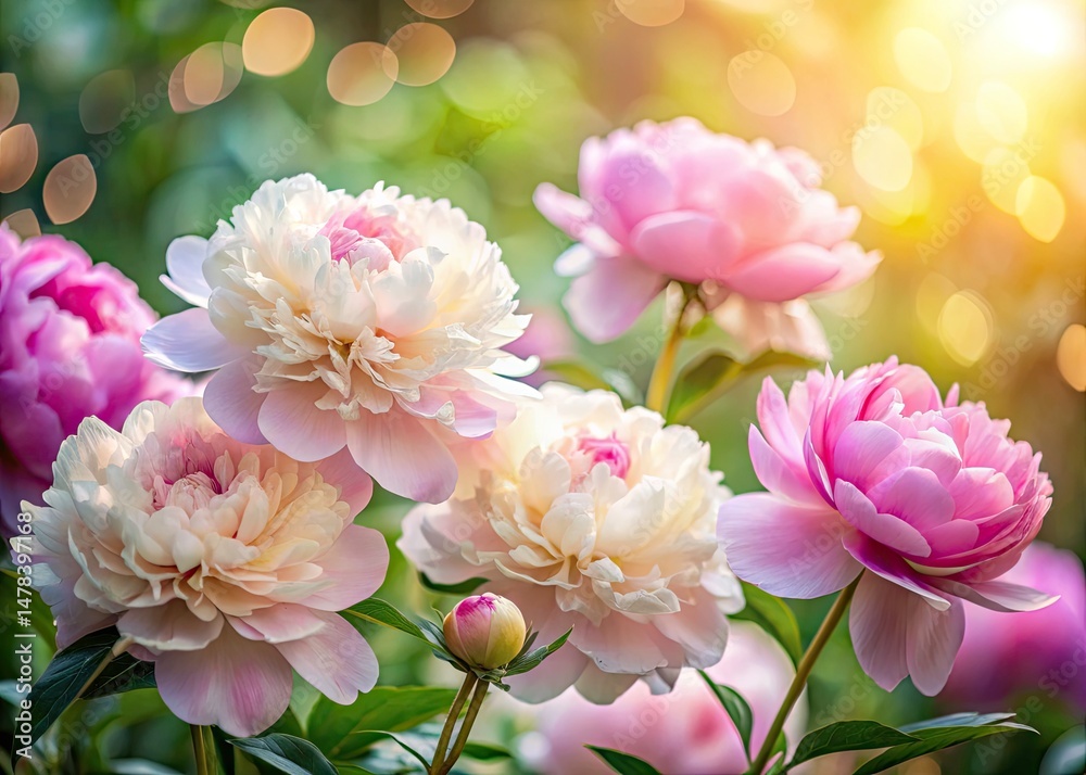 Soft Pink & White Peony Blossoms Delicate Watercolor Wallpaper Mural - Decorly Solutions | Decorly Solutions