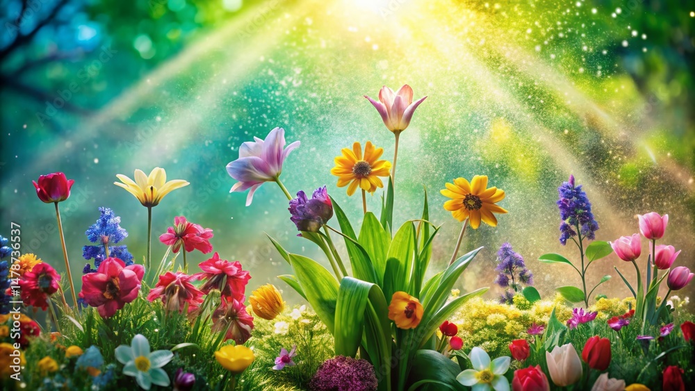 Vibrant Spring Garden Scene Colorful Flowers Spray Paint Wallpaper Mural - Decorly Solutions | Decorly Solutions