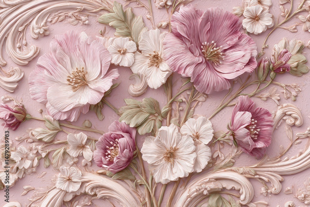Ornate floral wall decor with sculpted blossoms and leaves.
