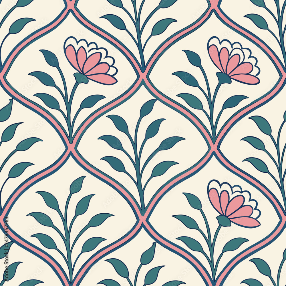 Floral Pattern With Pink Flowers And Green Leaves Wallpaper Mural - Decorly Solutions | Decorly Solutions