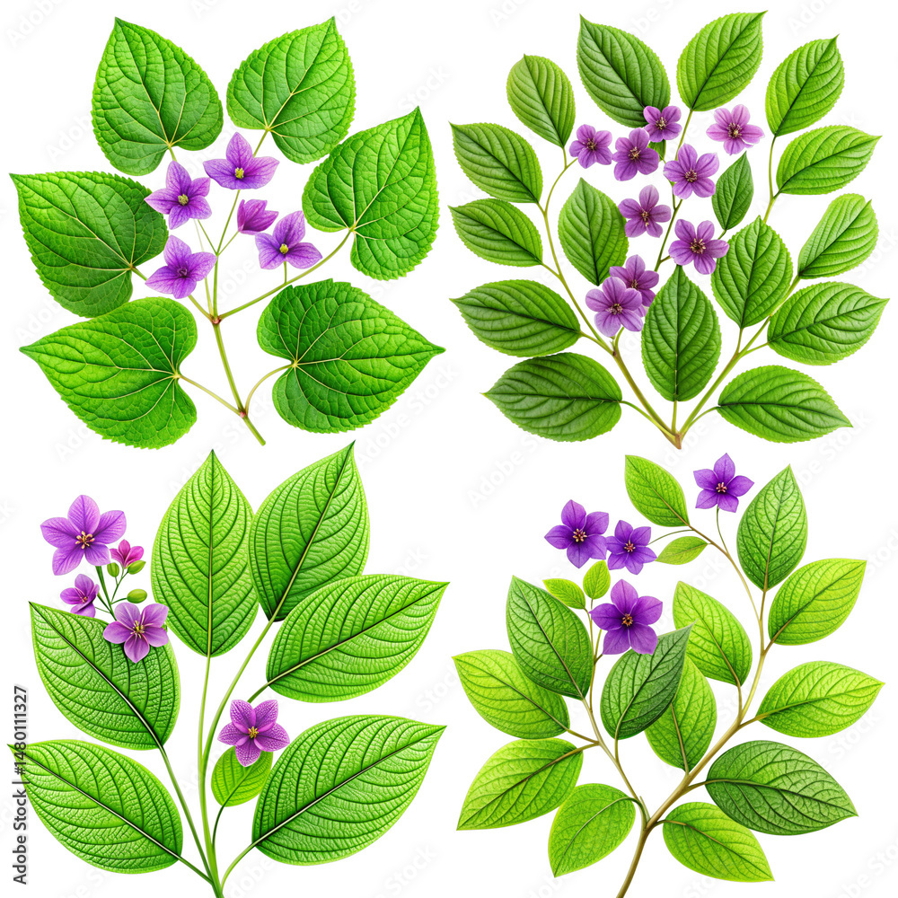 Green Leaves with Purple Flowers on Transparent Background - Wallpaper