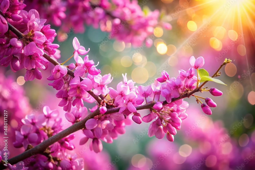 Spring Blossoms: Fuchsia Judas Tree Flowers with Bokeh Backg Wallpaper