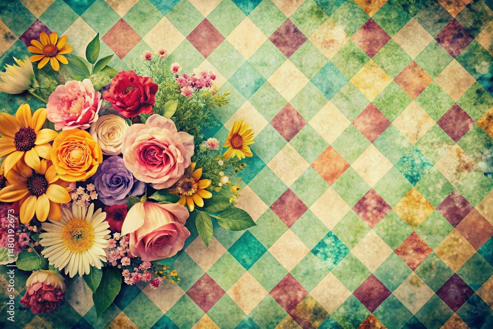 Vintage Checkered Floral Background - Retro Style Pattern Wallpaper Mural - Decorly Solutions | Decorly Solutions
