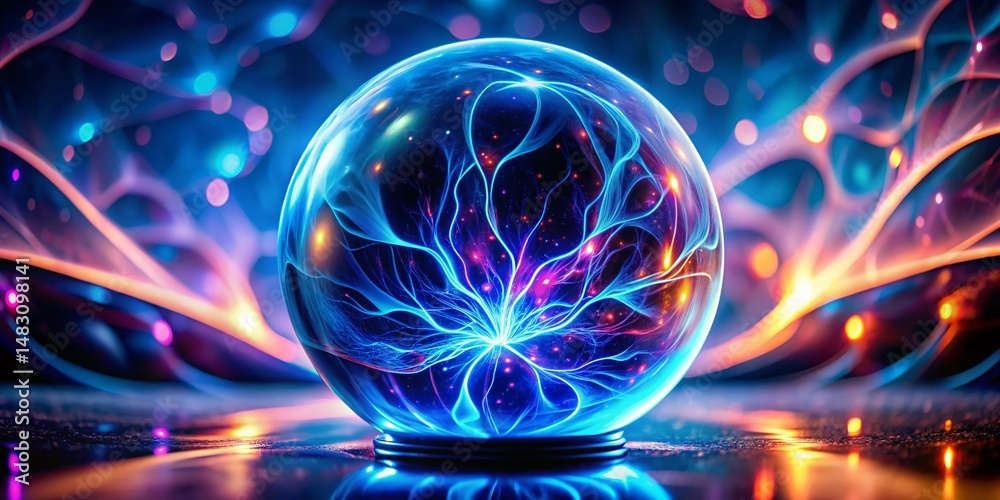 Abstract Futuristic Blue Plasma Sphere Liquid Core Flowing Wallpaper Mural - Decorly Solutions | Decorly Solutions