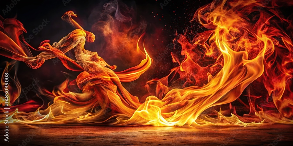 Fiery Dance: A captivating abstract photograph of fire and smoke, showcasing a mesmerizing interplay of vibrant orange and white hues against a dark backdrop.