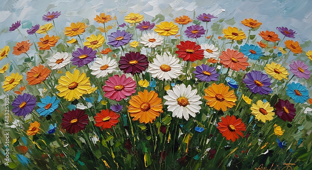 Vibrant Oil Painting of Colorful Daisy Bouquet Wallpaper