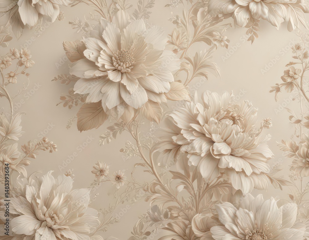 Intricate Ecru Floral Wallpaper Soft Neutrals Cream Background Wallpaper Mural - Decorly Solutions | Decorly Solutions