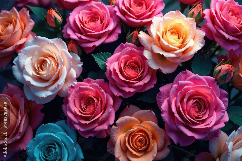 Intricate blooming roses, densely packed, vibrant hues , garden, floral pattern, romantic