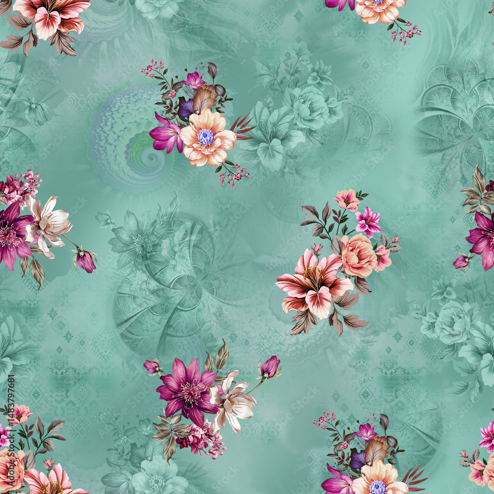 Seamless Allover Pattern Of Watercolor Roses And Leaves Wallpaper Mural - Decorly Solutions | Decorly Solutions