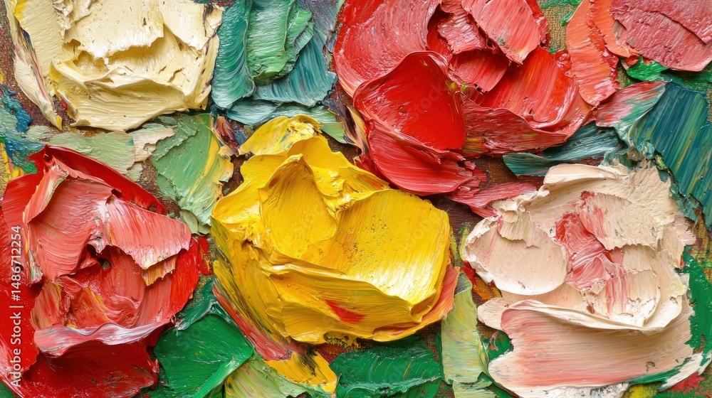 Close-up View Of Colorful Impasto Painting Wallpaper Mural - Decorly Solutions | Decorly Solutions