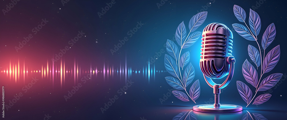 Vintage microphone with vivid background of for stand-up comedy show, karaoke, singing contest and other events.