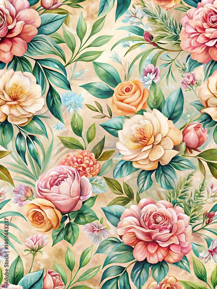 Floral Pattern With Pink And Orange Flowers Graphic Wallpaper Mural - Decorly Solutions | Decorly Solutions