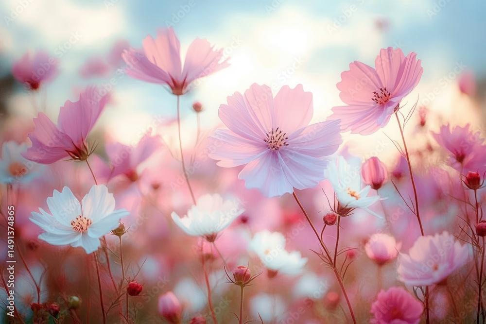 Delicate Pink And White Flowers Blooming In A Wallpaper Mural - Decorly Solutions | Decorly Solutions