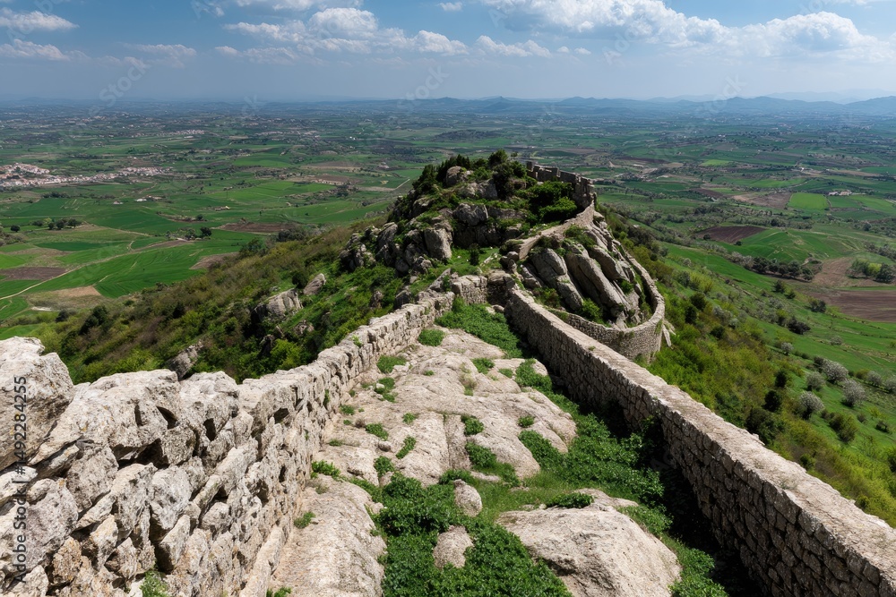 Stone Wall Vista View of Green Landscape Wallpaper