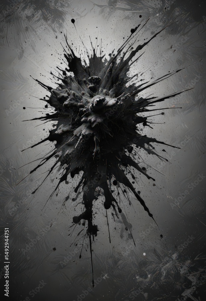 Black powder explosion against white background, artistic concept, black powder, explosion, white background, artistic