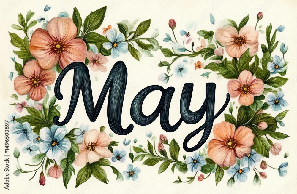 Elegant hand-lettered word 'May' surrounded by delicate illu Wallpaper