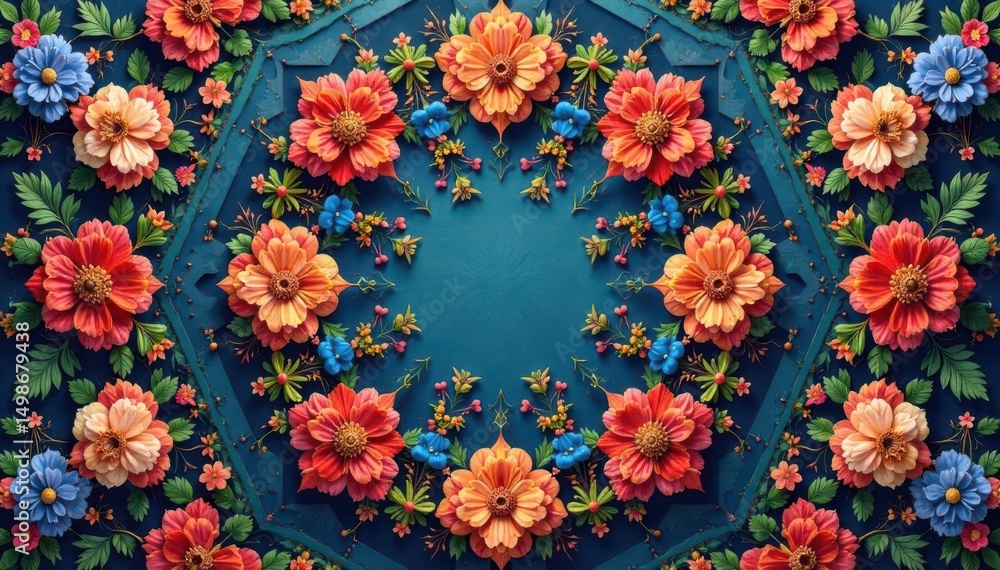 Intricate Floral Pattern Within A Geometric Hexagon Frame Wallpaper Mural - Decorly Solutions | Decorly Solutions