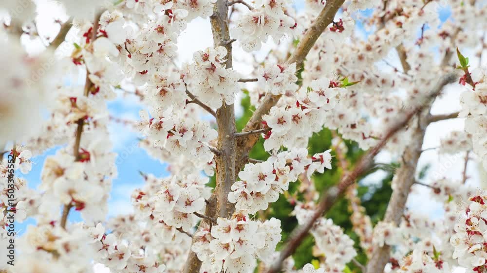 Abundance of cherry tree flowers in blossom