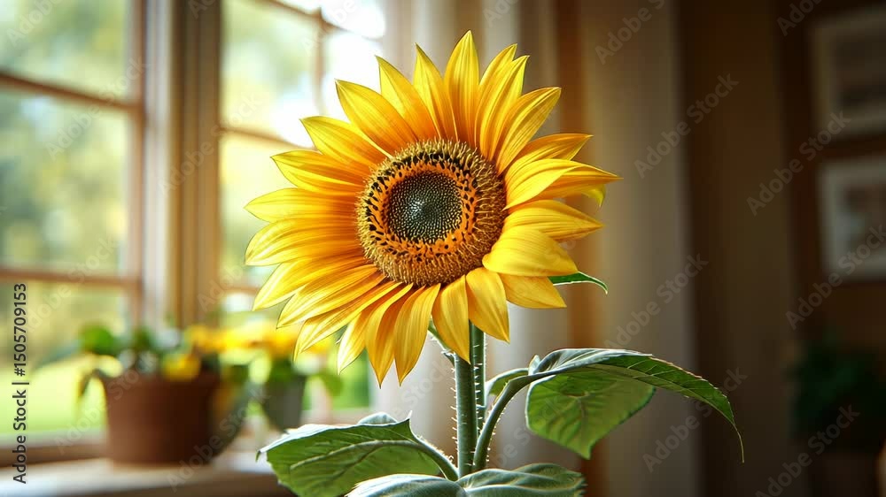 A Vibrant Sunflower In Full Bloom Sits On Wallpaper Mural - Decorly Solutions | Decorly Solutions