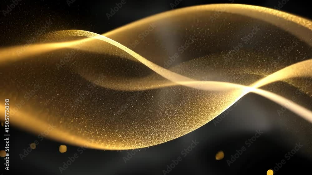 Golden Glowing Wave-like Particles Flowing On A Dark Wallpaper Mural - Decorly Solutions | Decorly Solutions