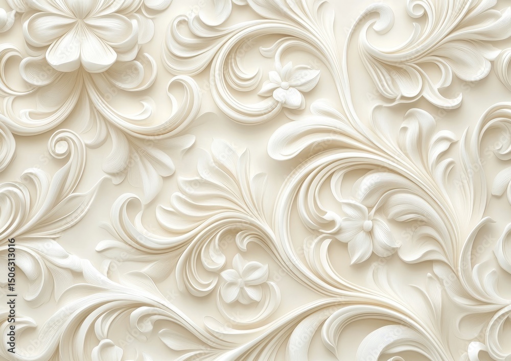 A graceful cream design featuring flowing swirls and ornate floral accents seamlessly arranged for elegance