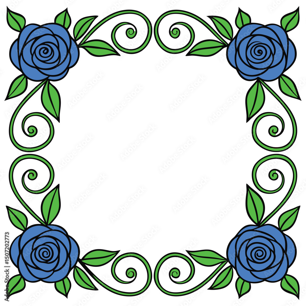 Blue Roses Floral Frame Design Element Vector Illustration Wallpaper Mural - Decorly Solutions | Decorly Solutions