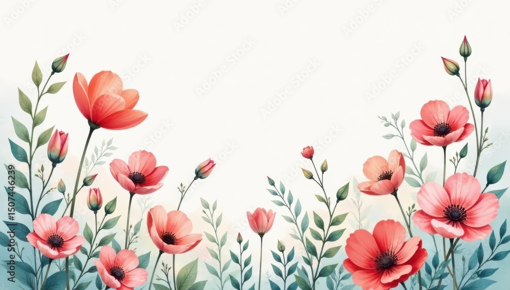 Delicate Watercolor-style Wildflowers In Soft Pastel Shades Subtly Wallpaper Mural - Decorly Solutions | Decorly Solutions