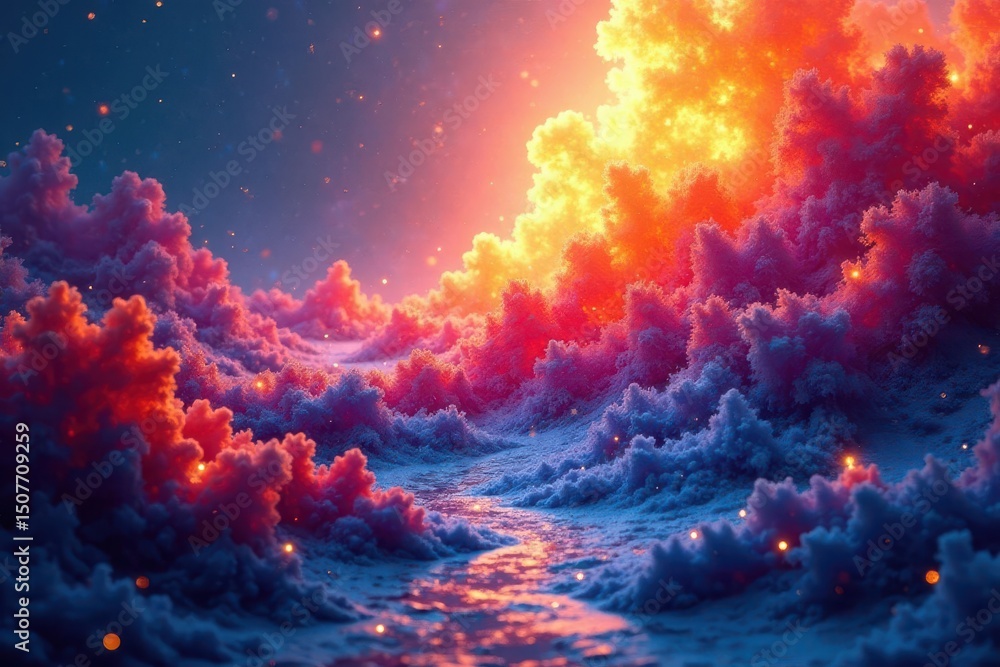 Cinematic And Realistic Fantasy Sky Featuring Fluffy, Glowing Clouds Under Stars