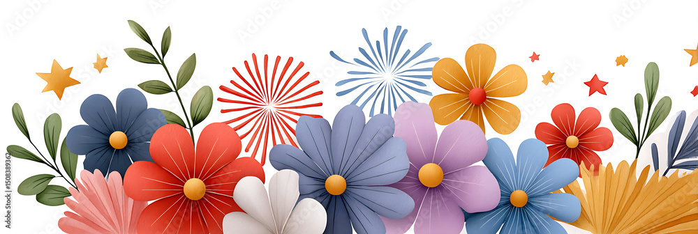 Colorful Flower Bouquet With Green Leaves And Star Wallpaper Mural - Decorly Solutions | Decorly Solutions
