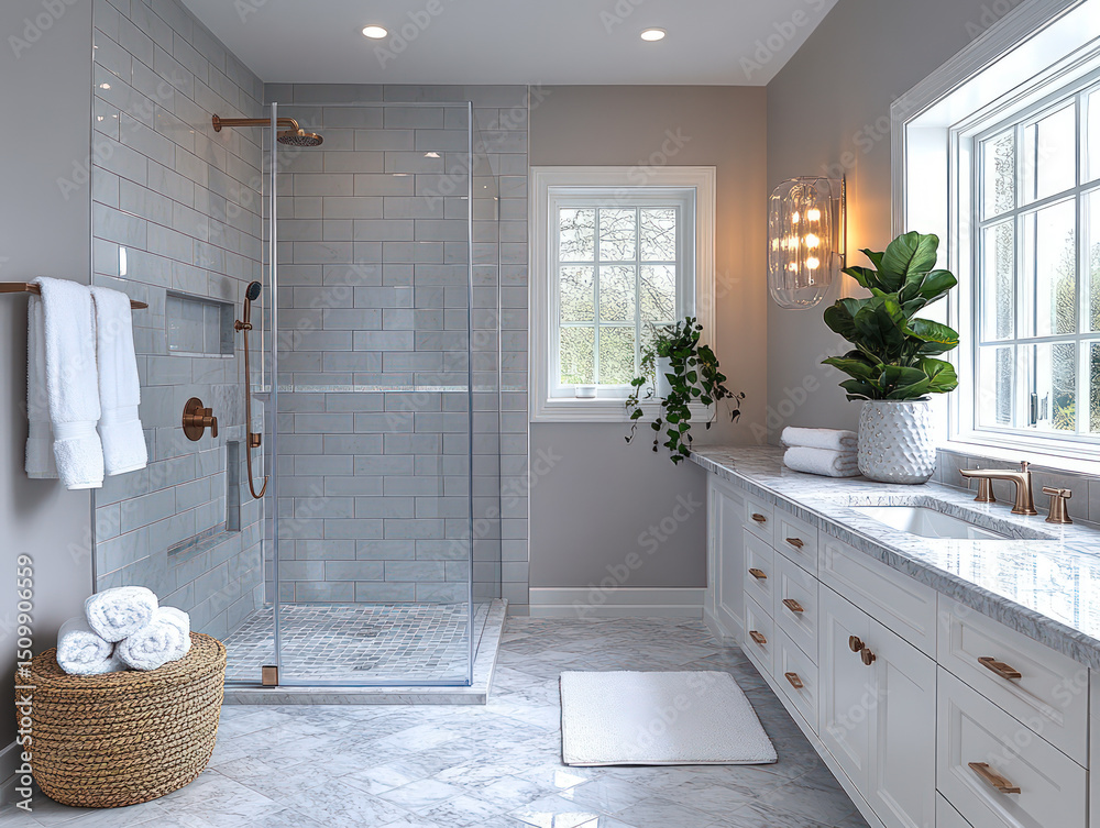 Bright And Modern Bathroom With Glass Shower Marble Wallpaper Mural - Decorly Solutions | Decorly Solutions