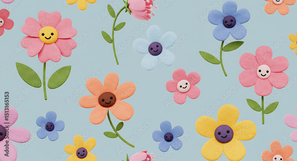 Colorful Flowers With Smiling Faces Wallpaper Mural - Decorly Solutions | Decorly Solutions