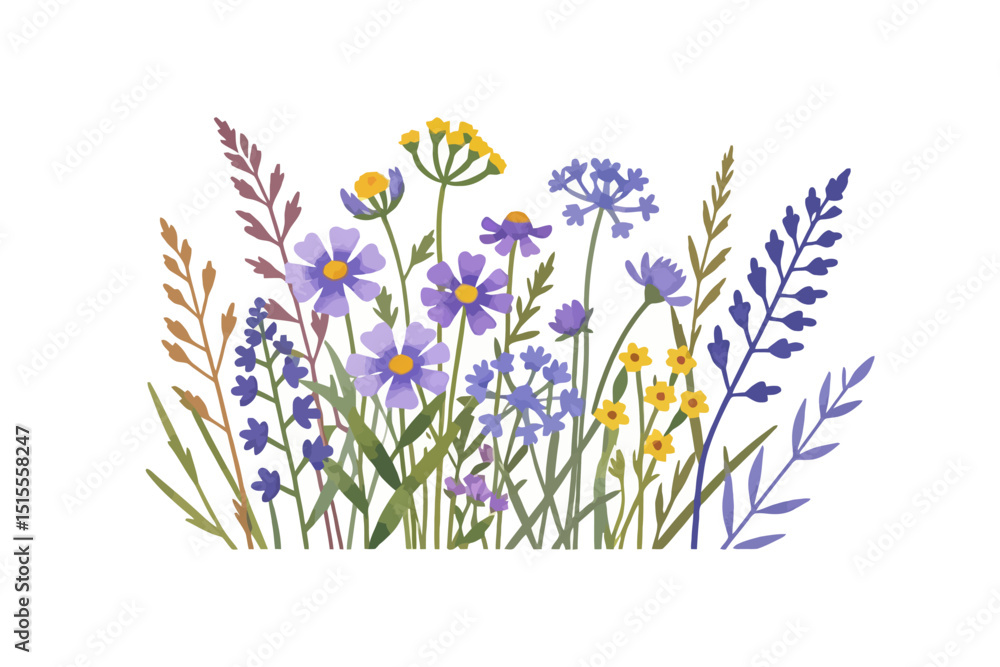 Watercolor Wildflower Meadow Illustration- Delicate Floral Arrangement With Wallpaper Mural - Decorly Solutions | Decorly Solutions
