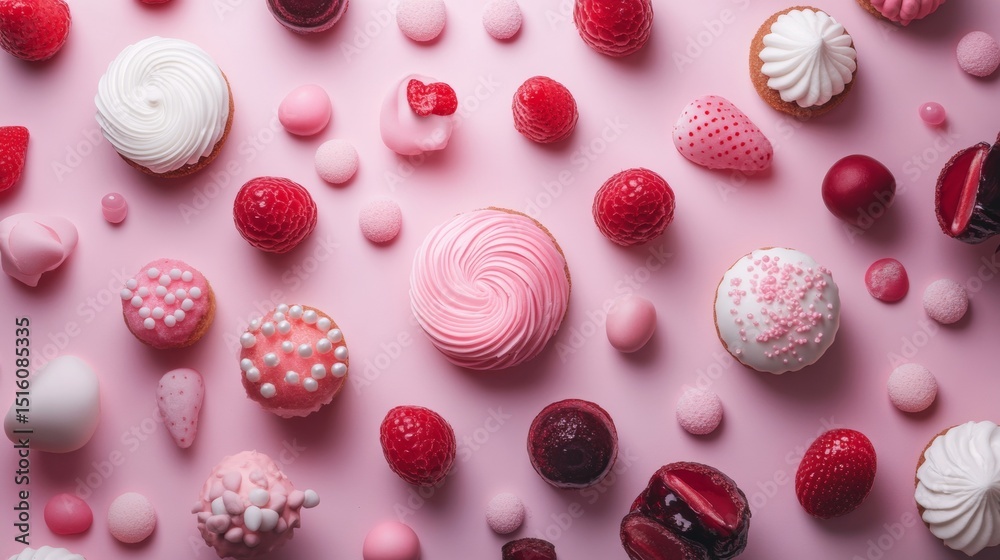 Colorful Heart Candies Flatlay On Pink Background For Wallpaper Mural - Decorly Solutions | Decorly Solutions