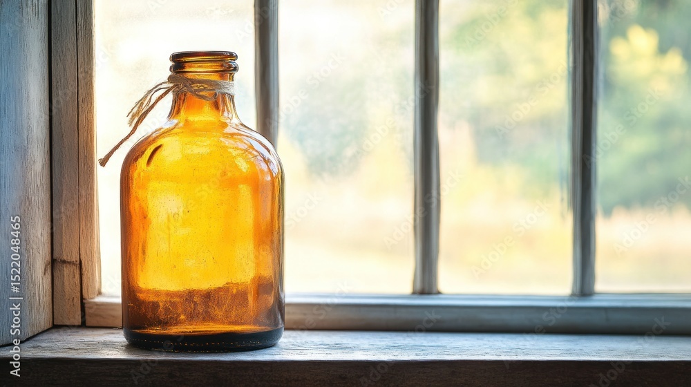 An Amber Colored Glass Bottle Sits Beside A Wallpaper Mural - Decorly Solutions | Decorly Solutions