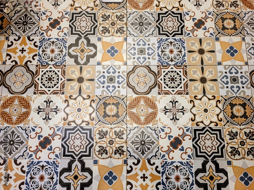 Vibrant Vintage Tile Mosaic A Collection of Ornate Patterns and Earthy Hues